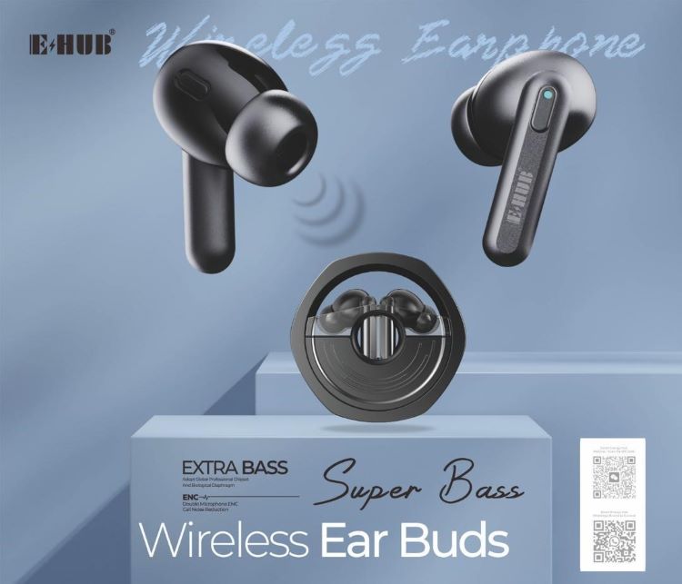 Upgrade your listening experience with E~HUB super bass wireless earphohes where powerful sound meets comfort and style.